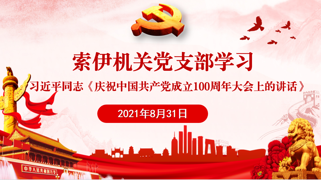 8月31日下午,索伊集團黨委機關黨支部召開支部全體黨員會議,組織學習習近平同志《慶祝中國共產黨成立100周年大會上的講話》。會議由黨支部書記、集團財務總監施軍主持。...