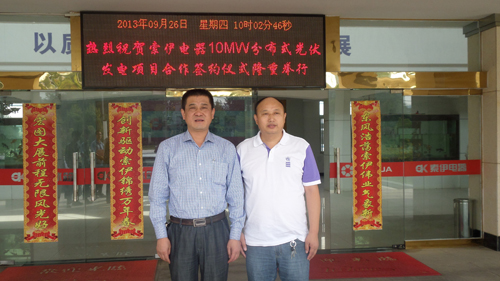 2013年9月26日上午9時許,六安索伊電器制造有限公司與安徽恒瑞新能源科技有限公司在索伊電器會議室隆重舉行了10MW分布式光伏發(fā)電項目合作簽約儀式;...