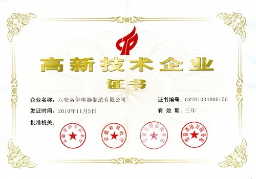 ——熱烈祝賀六安索伊電器榮獲“安徽省2010年高新技術企業”榮譽稱號...