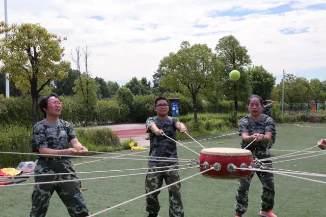 今天的拓展活動有四項內容,所有的學員分成三個組,大家選出了自己心目中隊長和副隊長,一隊精英隊,二隊輝煌隊,三隊是戰狼隊,一個個響亮的隊名,一個個錚錚的口號,大家士氣倍增,干勁倍足。在150秒內完成四個挑戰項目,這是很好的檢驗團隊力量的項目。擊鼓顛球,多人拽繩拉鼓,小球在鼓上顛球不少于8個,活動才算通過,否則球落地重新開始。這檢驗的是團隊的平衡力和配合協作力。第二個項目就是隊員手拉手,套繩從每個人身上傳過,手不允許松開,考驗的是隊友之間的配合默契度。第三個項目是巧運乒乓球,每個隊員手里拿著一個塑料小槽,球在小槽里流動,大家一個一個的接籠,不允許落地,否則重新開始。Zui后一個項目是大家站成圓形,分別向左右隊員背部擊掌,說出一個字擊一掌,說出兩個字擊兩掌,大家必須整齊劃一,Zui后左右擊八次掌喊出“我們是Zui棒的團隊”這個口號,如果團隊配合不協調,聽出一個雜音都要重新開始,這是團隊士氣的Zui佳考驗。