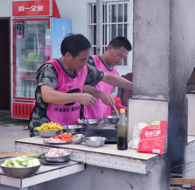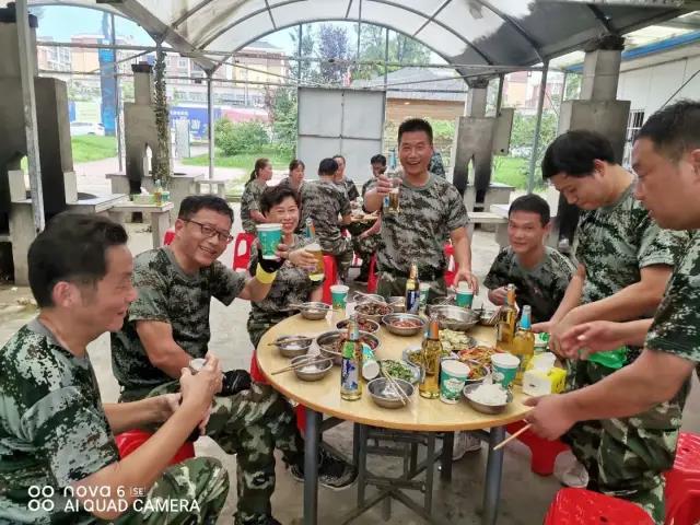 拓展活動結束以后,大家更開心的就是野炊大鍋灶了。這是一個釋放壓力,放飛心情、展示絕活的時機,十人一組,四個小組大家分工明確,有專門摘菜和洗菜的,有專門燒火的,還有專門配菜的,每個組一個灶臺兩口鍋,新鮮的食材,四葷六素,大鍋灶的現場就是廚藝比拼的戰場,哇!紅燒雞、糖醋魚、油燜大蝦、五花肉燒茄子,還有涼拌黃瓜、素炒南瓜絲、土豆片、香菇白菜、西紅柿雞蛋湯。更重要的是吃到了多少年想吃但吃不到的大鍋的鍋巴。今天上午也是運動和快樂到了極致,大家的食欲大增,開懷暢飲,快樂滿滿。