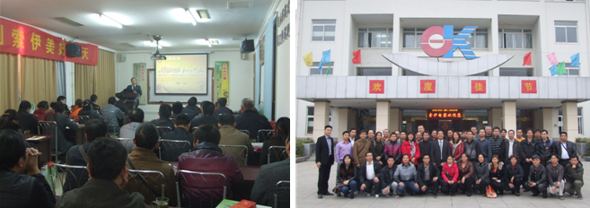 一天的工廠參觀已漸近尾聲,伴著夕陽的余輝,60多位銷售商朋友們依依不舍的和索伊銷售陳明章總經理在公司大樓前合影留念。