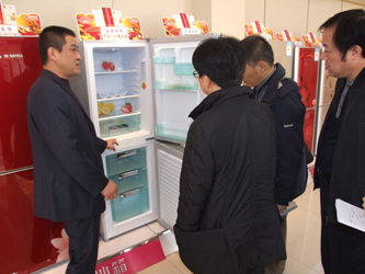 朱寧副廳長一行在索伊期間,深入生產一線,了解企業當前的生產經營情況。在冰箱展廳,朱廳長饒有興趣地參觀了2011年新品冰箱,當得知索伊新品開發與投放市場的速度在國內處于領先地位時,不時發出由衷地贊嘆。對索伊近年來狠抓自主品牌建設,持續做大做強給予高度的評價。在座談會上,朱廳長充分肯定了索伊電器近年來所取得的優異成績和對六安家電行業的發展做出的突出貢獻,希望企業能抓住家電下鄉的歷史機遇,與時俱進,走自主創新,走品牌建設之路。對如何做好家電下鄉工作,朱廳長提出了很好的意見和建議,并表示將積極支持索伊二期建設。