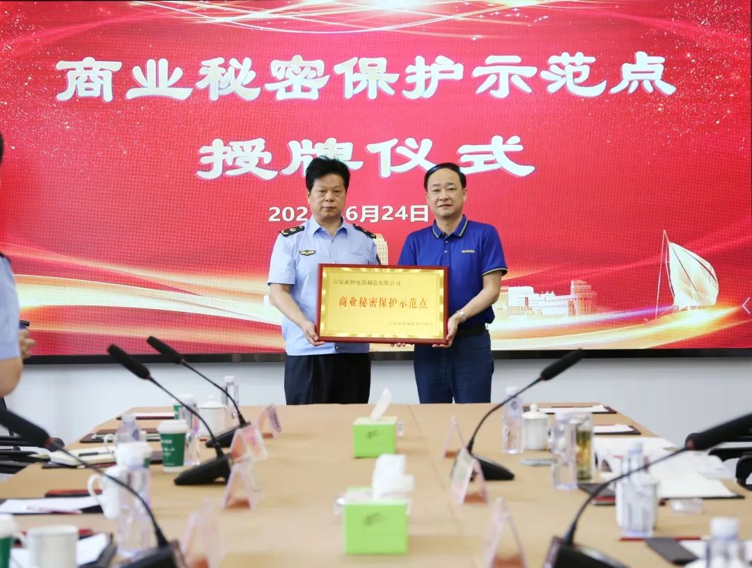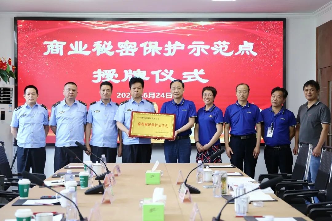 2022年6月24日,六安市市場監督管理局向六安市首批商業秘密保護示范企業授牌。索伊公司商業秘密保護示范點創建工作通過驗收,成為六安市首批商業秘密保護示范點。市市場監管局二級調研員韓勇、開發區市場監管分局局長袁紅軍及相關業務科室負責人、集團董事長助理倪曙東、公司副總許必鋒、黨委書記汪顯華參加授牌儀式。