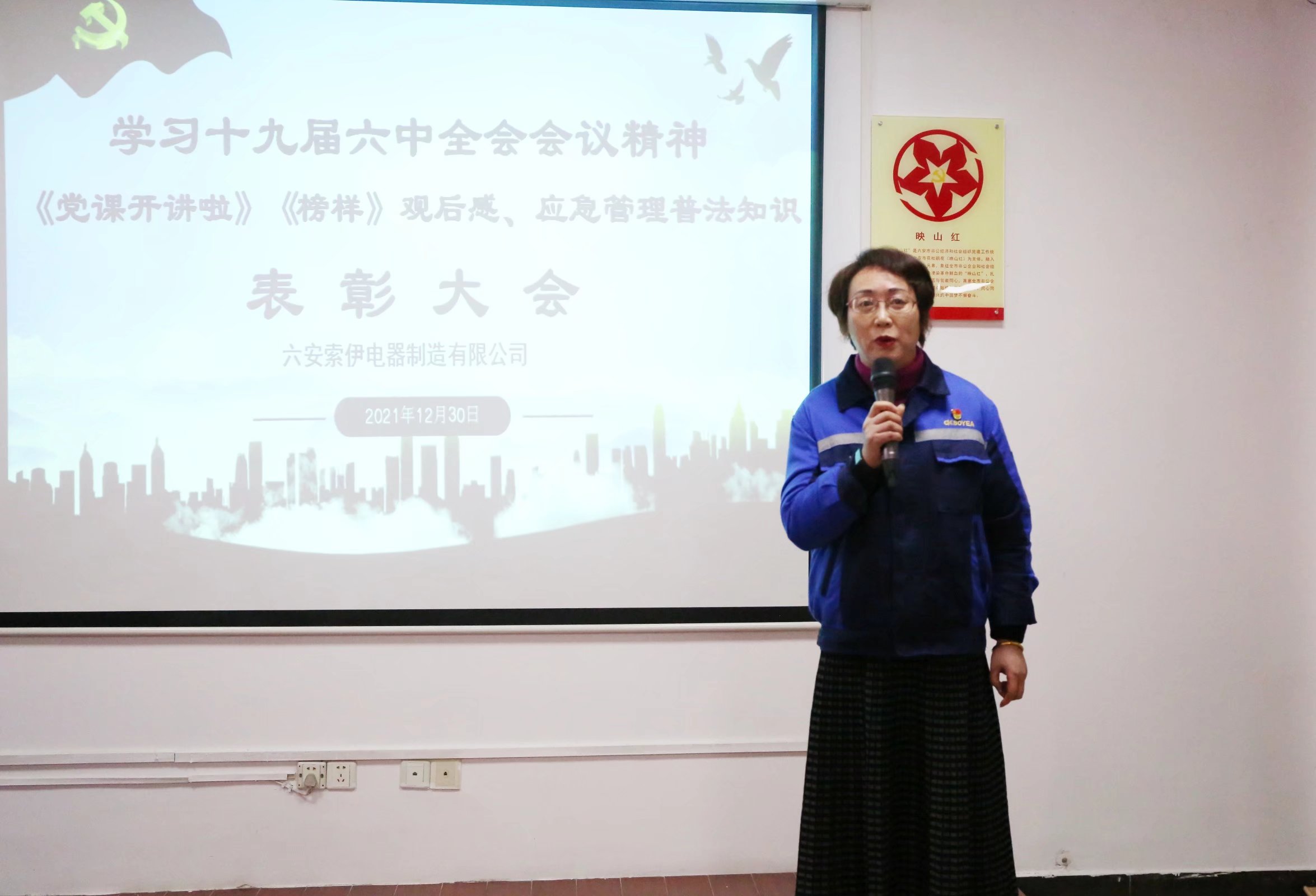 為深入貫徹學習黨的十九屆六中全會精神,進一步強化黨員的大局意識、責任意識和敬業愛崗意識,2021年12月30日下午,索伊公司黨委在黨員活動室召開全體黨員大會,會議主旨是學習黨的十九屆六中全會精神,結合公司2022年的全面預算管理目標,統一思想,凝心聚力,進行層層分解落實,做到人人有指標,個個有擔子,全力以赴,開好局,起好步,努力完成公司2022年奮斗目標。