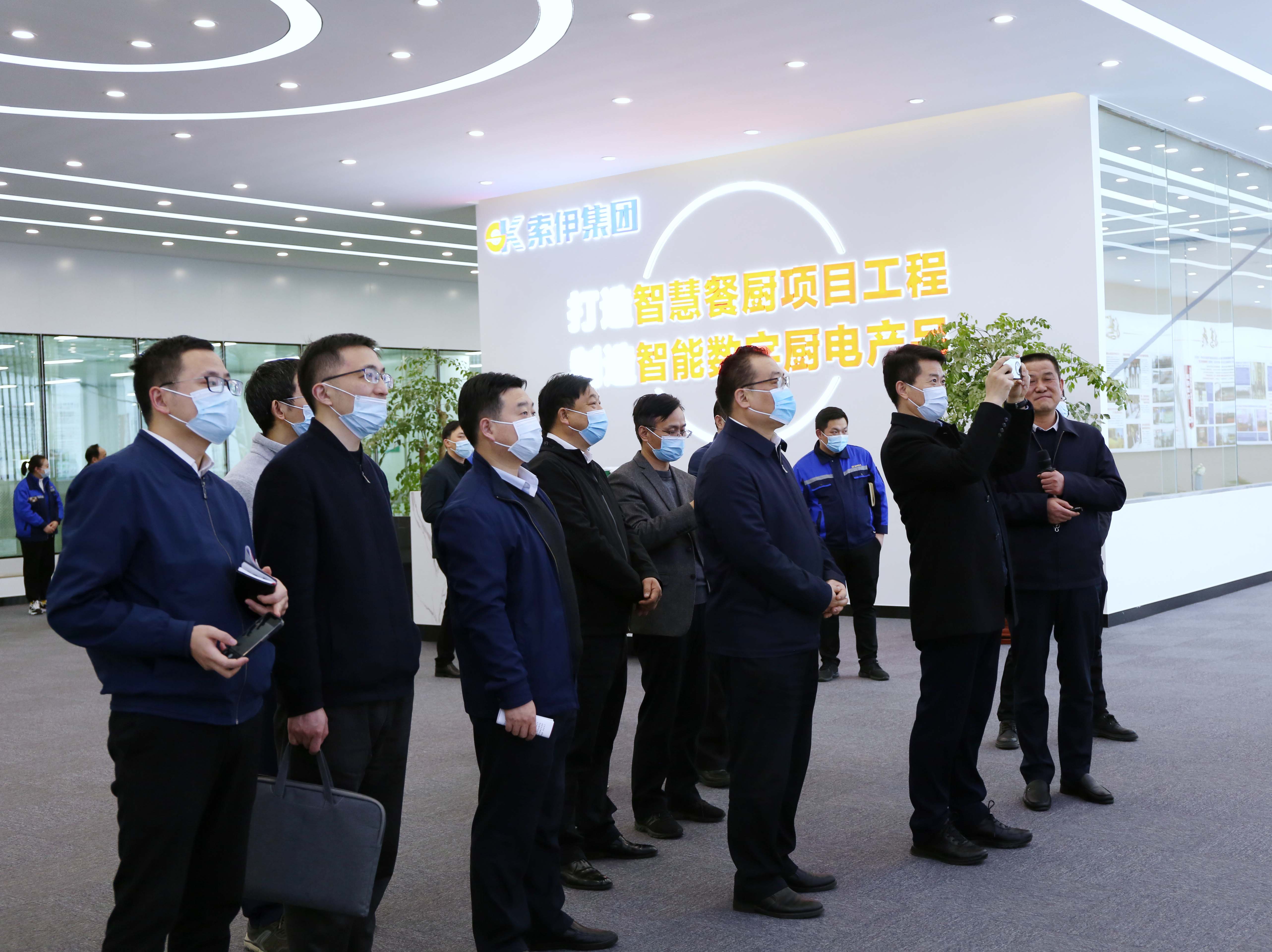 接著各位領導來到集團轉(zhuǎn)型展示廳,王董事長向大家介紹了索伊集團的發(fā)展歷程,以及企業(yè)如何走轉(zhuǎn)型升級之路,通過多年的探索,最終確定以“智慧餐廚項目工程”為核心的發(fā)展方向,以“智能化數(shù)字廚電新產(chǎn)品”研發(fā)、制造和應用為核心的智能化數(shù)字化產(chǎn)業(yè)集群。創(chuàng)造性提煉出了二十一世紀餐飲行業(yè)發(fā)展的“八化”趨勢,即“餐飲品牌化、廚房中央化、消費智能化、應用廣泛化、品質(zhì)一致化、品種多元化、食安溯源化、運營標準化”。張省長聽了覺得很有創(chuàng)意,也非常有道理,高興地拿出手機拍下了“八化”的內(nèi)容。并對索伊集團的戰(zhàn)略眼光,超前思維,精辟總結(jié)大為贊賞。更對索伊集團把錢學森在1995年提出的“烹飪工業(yè)化將出現(xiàn)在21世紀中國的第六次產(chǎn)業(yè)革命中”這一偉大構(gòu)想,變成現(xiàn)實給予點贊。張省聽取了王瓊峰董事長的匯報后,對索伊集團的智慧餐廚項目工程給予充分的肯定。