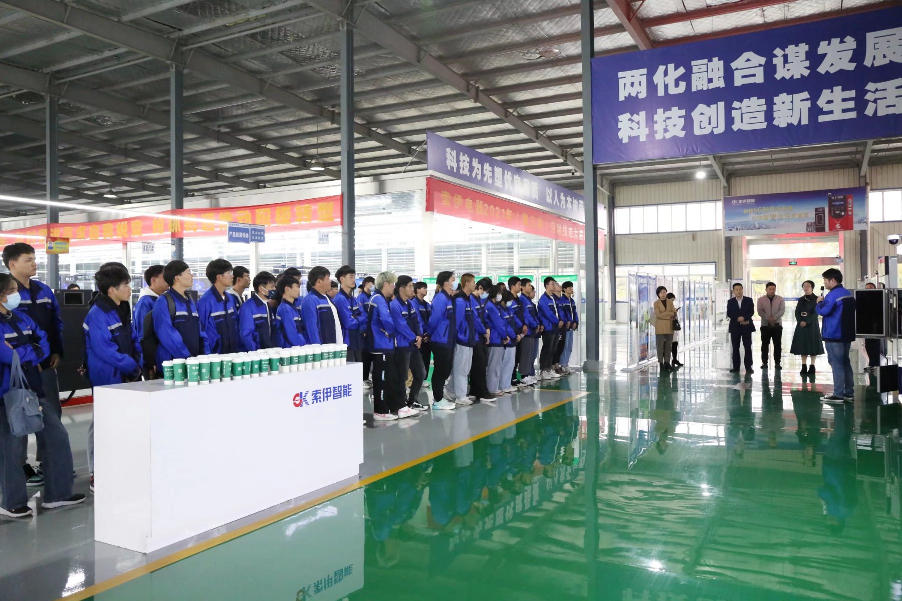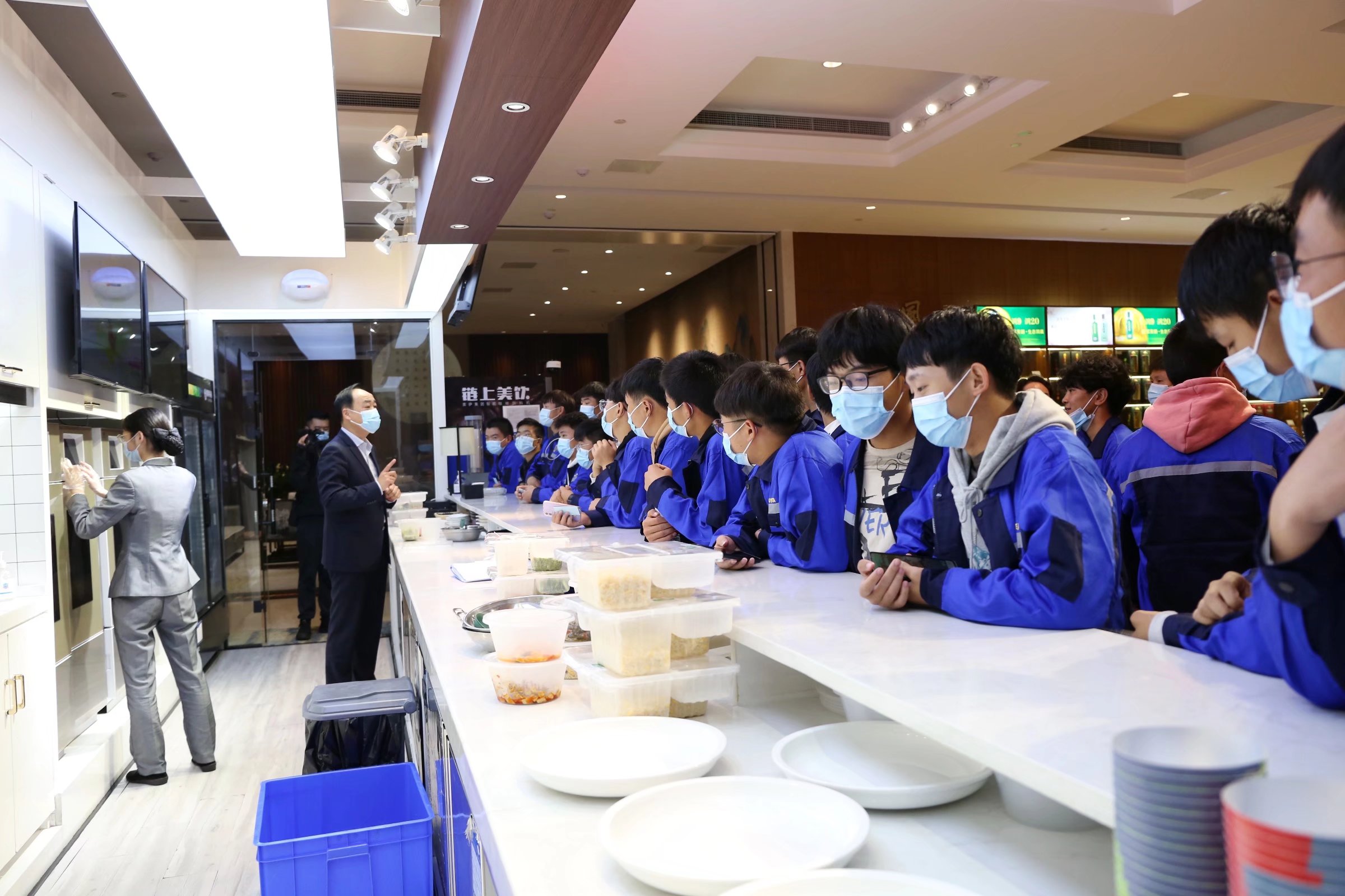 開班儀式前“智慧餐廚”班的師生們參觀了安徽索伊集團,聽取了集團黨委書記汪顯華對于索伊企業文化的介紹。走進了智能制造車間,聽取了公司銷售部長方明洋對智能化數字烹飪機器人和智能化數字機器人飲料機等產品的介紹,同時還品嘗了現磨的咖啡,同學們非常的興奮。還參觀了公司的產品展示廳和轉型展示廳,看了產品,聽完講解,進一步了解了索伊探索升級,智能轉型的過程。最后,又來到了索伊君瀾大酒店的智能機器人體驗廳,品嘗了麻婆豆腐、焗雞翅、紅燒冬瓜、洋蔥牛肉粒,同學們都贊不絕口,都說機器人的手藝勝過大廚的手藝,味道好極了,同學們都急不可待想盡早加入索伊,成為幸福的索伊人。