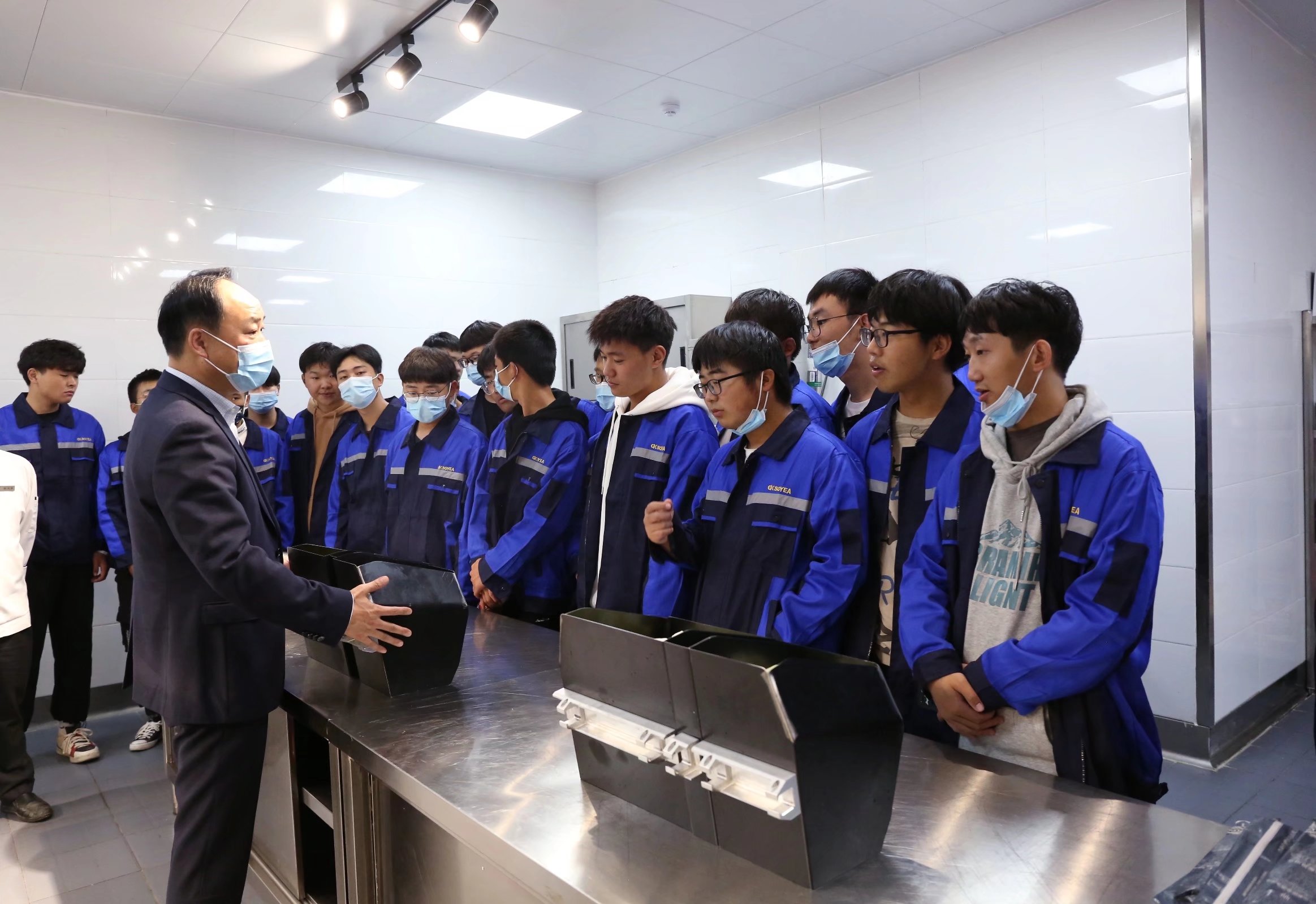 開班儀式由職業技術學院副院長王家祥主持。安徽索伊集團董事長助理倪曙東致詞,并就雙方共建“智慧餐廚”班寄予很大的厚望。他說企業發展的核心在于人,快速實現從“傳統制造”向“智能制造”的擅變,關鍵詞是人才。企業需要一支專業理論扎實、專業技術熟練、專業素質過硬的技能人才隊伍。“智慧餐廚”班的開班為企業搭建了人才培養的“直通車”。共建“智慧餐廚”班,全面實施專業與企業對接,學生與社會對接,教學與就業對接,開展共建校企合作教學模式。我們堅信,在學院領導的大力支持和幫助下,定會把這次共建做實、做強、做大,實現學生、學院、企業三方共贏!希望“智慧餐廚”班的同學們,珍惜自己的青春時光,珍惜自己的學習機會,扎實學習專業本領,發揮自己的聰明才智,早日歷練成為一名卓越的索伊人。接著“智慧餐廚”班的學生代表張楊楊發言,他說感謝學校和企業為他們搭建了這樣一次學習的機會和平臺,一定不辜負大家的希望,努力學習,不斷提升自己,把學到的專業理論知識與企業的實踐相結合,早日回報社會,服務企業。