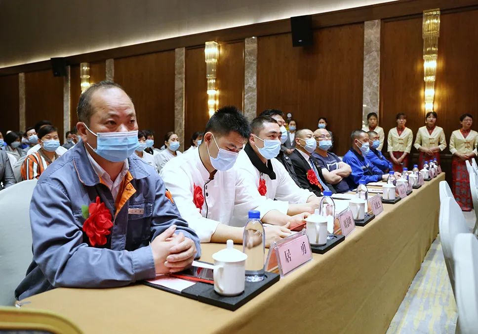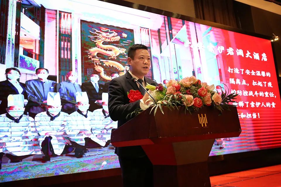 會上,全體參會人員共同觀看了索伊集團抗疫專題宣傳片《“疫”路風雨  “伊”路有你》;董事長助理倪曙東宣讀了安徽索伊集團表彰文件;云餐智慧物聯科技有限公司總經理孫玉勝、索伊君瀾大酒店總經理張雷分別代表先進集體上臺發言,索伊電器制造有限公司安環處處長張嘯、索伊君瀾大酒店智廚主管戚玲代表先進個人上臺發言。集團領導和部門領導先后為3個先進集體和17位先進個人進行現場頒獎。